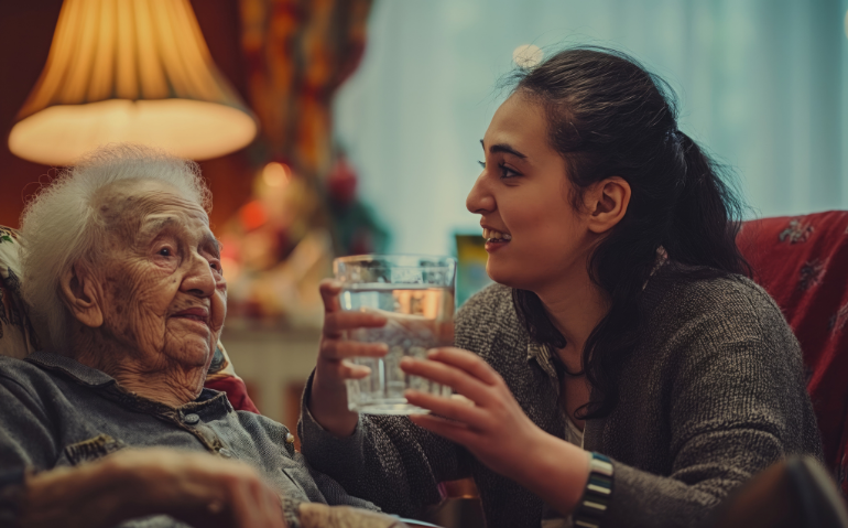 Wearable health monitoring devices are integrated into the system to continuously track vital signs and health metrics, including heart rate, blood pressure, activity levels, and sleep patterns. Real-time data is transmitted to healthcare providers or family members, enabling proactive monitoring and early detection of any health issues.